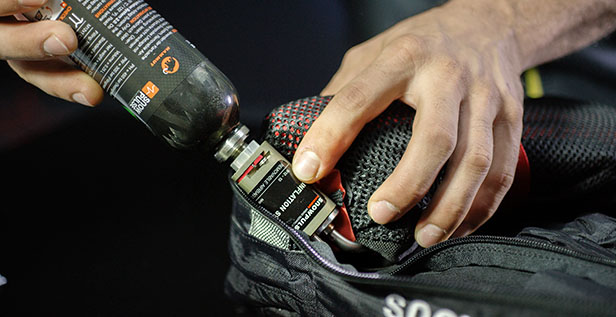 Einzelne Rückmeldungen sowie intensive Nachkontrollen haben ergeben, dass sich in sehr seltenen Fällen die Verbindung zwischen Auslöseeinheit und Venturidüse bei sehr intensivem Gebrauch der Lawinenairbags...