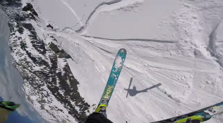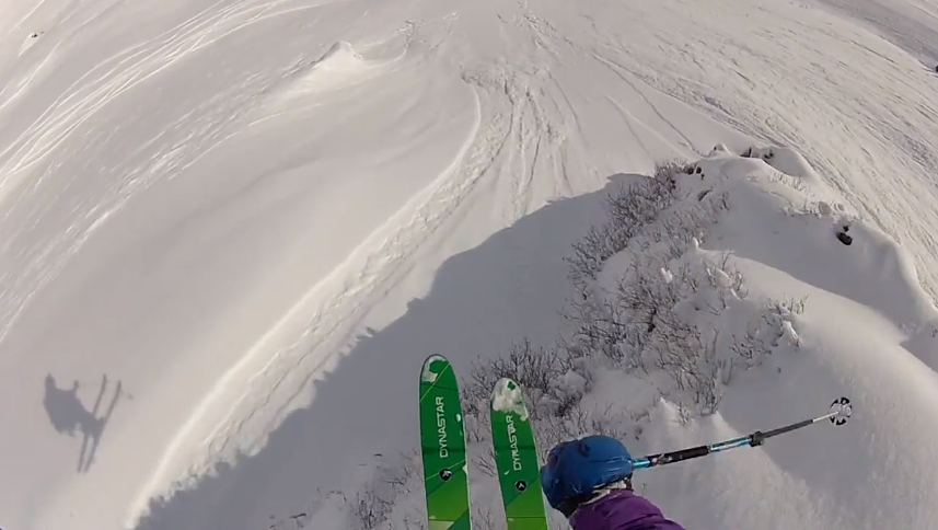 “Low snow year blah blah blah. Found pow, jumped off shit, etc. Broken leg blah blah blah.”