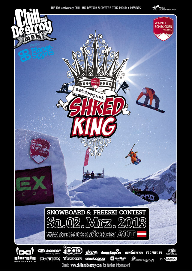 Gefeiert werden die „SHRED CHAMPS“ am Samstag Abend 9. März 2013 auf der offiziellen CaD-After-Contest-Party, in der „MÜHLE in Gaschurn“ – Unter dem Motto „Chill and Destroy – rockt die Party” wird in der „MÜHLE“ geshaked, gedanced und abgehottet, dass alles zu spät sein wird…