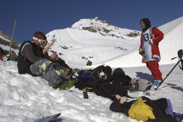 Bei bestem Wetter ging’s heute direkt von den EFO 2011 in Laax nach Arosa zum Andri Ambühl Invitational. Motiviert durch das gute Wetter und die perfekten Bedingungen, ließen sich die bereits angereisten Rider nicht lang bitten und pilgerten zum Sunset Kicker am Carmenna Sessellift. Dort angekommen machte sich auf allen Gesichtern zuerst einmal ein fettes Grinsen breit, zu schön war einfach der Anblick des perfekten Obstacles. Auch die Skidoos standen schon bereit, um die Pros zum Drop-in zu bringen und so dauerte es nicht lange, dass eine amtliche Session im Gange war. Ohne jeglichen Contest-Druck stylten die Rider bis zur mittaglichen Siesta vor einem perfekten Bluebird-Panorama und jeder bekam seine “Portion Stoke” ab. James “Woodsy” Woods betonte sogar immer wieder, dass heute “der beste Tag seiner Saison” gewesen sei. Wer Zeuge dessen war, wie sich der UK-Pro über den massiven Booter schoss, der hat es ihm sofort geglaubt. Doch auch die anderen Rider hatten ihre Trickkisten dabei und wühlten ordentlich darin rum. Gastgeber Andri Ambühl ließ es sich natürlich nicht nehmen, sein Signature Kicker zu shredden, genauso wenig wie sein Bruder, der frisch gebackene Sieger der EFO 2011, Elias Ambühl. Joss Christensen, Jonas Huntziker, Kai Mahler, Gaute Silseth und Erik Hughes taten es ihnen gleich und gaben mächtig Gas. Letzter machte seinem Namen alles Ehre und ging tatsächlich ein wenig “too huge” über den Kicker. Für ihn war die Session nach einem Bail mit Verdact auf einen Fußbruch am Nachmittag leider vorbei. Get well Erik! Damit ihr wisst, was sonst noch abging, findet ihr hier eine kleine Fotoauswahl von Tag 1… Enjoy!