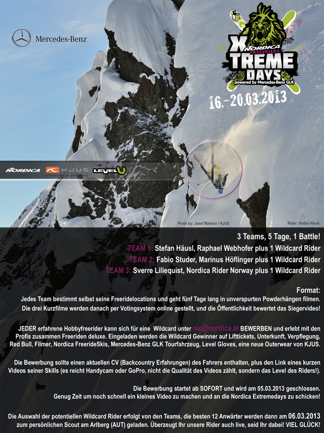 Richard Permin, Sage Cattabriga-Alosa, Tobi Tritscher und Tim Durtchi aus dem Atomic Team waren diese Woche zum Line Catcher 2013 nach Les Arcs eingeladen. Nach 3 Schlechtwetter Tagen sollte sich endlich das Warten gelohnt haben und die gesamte Belegschaft Fand Das Contest Venue unter blauem Himmel eingedeckt von feinstem Powder vor. Das sogenannte Stoke-Level war also dementsprechend hoch und so wurde auch die Airtime den Bedingungen angepasst, sprich die Boys “yardeten” sich gerne ein paar Meter weiter als gewöhnlich raus.