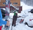 Der Arlberg ist privilegiert, denn nur am Freeride Hotspot der Österreichischen Alpen darf kommerziell Heli Skiing betrieben werden. Und das scheint dort auch notwendig zu sein, denn auch wenn das gesamte Gebiet über mehr Varianten und Touren abseits der gesicherten Pisten verfügt, wie wohl kein anderes Resort der Alpen, pflügen dort aber auch Heerscharen von Powder-hungrigen Freeridern jeden Quadratzentimeter unverspurtes Weiß binnen zweier Tage um. Diese Tatsache soll uns aber auf den 1.500 Höhenmetern erstmal nicht kümmern, auch wenn der letzte Schneefall schon drei Tage zurück liegt, denn unser Flugziel konnte wegen schlechtem Wetter während der letzten Tage kaum angeflogen werden. Dementsprechend präsentierte sich der Run hinunter auch „fast“ jungfräulich. Nachdem das zweite Quartett ebenfalls auf dem Gipfel abgesetzt und der LVS Check durchgeführt war, ging es auch los. Nach einer steilen Rutsch-Passage durften wir endlich unsere Turns ziehen und bei den vereinbarten Stopps grinsten wir uns alle gegenseitig im Kreis an. Viel zu schnell waren wir im Tal und die Gier nach freshem Pow war jetzt erst so richtig geweckt. Leider sollten wir während des restlichen Skitags im Resort unser Verlangen nicht stillen dürfen, weil sich während der letzten niederschlagsfreien Tage wilde Freeride-Horden über den Arberg hergemacht hatten, wie Jack the Ripper über seine Opfer – alles zerschlitzt.