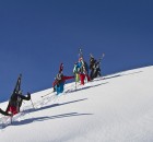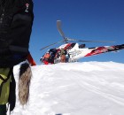 8.00 Uhr morgens – Stuben am Arlberg: Zwischen Müdigkeit und Aufregung trudeln die anderen sechs Gewinner des BMW Powder Ride Heli Fluges im Büro von Arlberg Alpin in Stuben ein. Nach einem kurzern Ausrüstungscheck begeben wir uns in Richtung Zürs, wo der Heli uns zusammen mit Freeride Pro Simon Wohlgenannt als Guide abholen soll. Dazu zeigte sich kein Wölkchen weit und breit am strahlend blauen Himmel. Und dann kündigt sich mit einem leisen Knattern das ersehnte Geräusch an, das zusehends lauter wird, bis schließlich der Heli über unseren Köpfen schwebet und keine 200 Meter von uns entfernt zur Landung ansetzt. Let´s get it on! Gebückt und mit den Freeride-Latten in der Hand kämpfen wir uns unter den Rotorblättern bis zur Kanzel. Drei hinten – einer vorne links neben dem Pilot! Und kaum sind die Türen verschlossen hebt der Heli auch schon ab und schraubt sich schnell nach oben. Nach fünf Minuten Flugzeit – gefühlten 30 Sekunden – ist unser Ziel auch schon erreicht – der „Mehlsack”