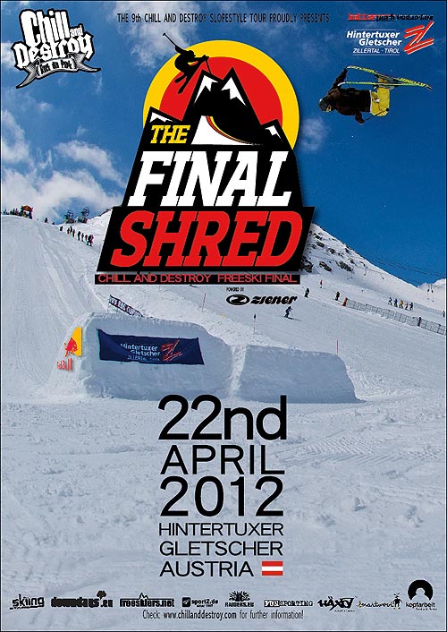 Der FINAL SHRED, das Chill and Destroy (CaD) Freeski Finale am Hintertuxer Gletscher wird um eine Woche nach hinten verschoben auf Sonntag, 22. April 2012! – Wer bekommt den „Ring of Glory“ des Gesamttoursiegers und wer wird Sieger der FINAL SHRED OPEN…?
