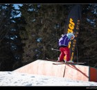 Bei den Freeski MEN konnte man schon eher von einer Konkurrenz sprechen. Das Battle, welches sich Lukas Schleußner, Loris Hermann und Tobias Hand im Finale lieferten, war jedenfalls allererste Sahne und sehr sehenswert. Während es für den Lokalmatador Tobias Hand mit fettem Backflip nur für den driten Rang reichte, fighteten Loris Hermann und Lukas Schleußner regelrecht um den ersten Platz.