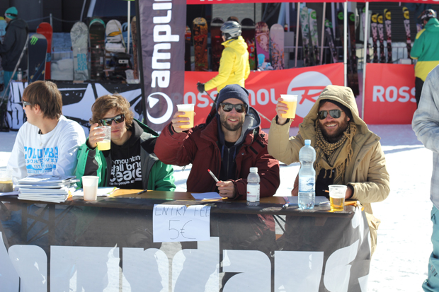 Lasst uns kurz rechnen. 2011 minus 26 ist 1985. 1985 wurde das erste Kaunertal Opening gefeiert. Selten war war das Grinsen auf den Gesichtern der Besucher so groß, denn 3 Tage Sonnenschein mit bester Fernsicht konnte durch nichts getrübt werden. Neben dem regen Betrieb an den Testständen wurde im Snowpark wieder ein solieder Slopestyle Comp abgehalten. Den Sieg fuhr zum siebten mal in Folge unser Ossi Skier Roy Kittler nach Hause. Für den Tiroler Rafael Schweiger machten sich seine Wasserschanzen Trainingssessions bezahlt, so dass er den zweiten Platz ausmachen konnte; Mit sauberen Cork9 True Tails und einem 630 aus dem Kanonenrohr sicher verdient! Auf dem umstrittenen dritten Platz landete Sebi Geiger. Umstritten deshalb, weil das spanische Shredkid, Luca Melloni, dem Sebi mit seiner megastylischen und technischen Jibline superdicht auf den Fersen lag. Insegsammt konnten einem bei der soliden Performance der meisten Teilnehmer die Judges nur leid tun. Die konnten dafür am Abend beim Mainmusicact von Afrob im Feichtner Partyzelt die vielen Scores aus Ihren Köpfen spülen.Bei dem Spass den wir hatten, solltet Ihr Euch auf jeden Fall wieder den 14.-16 Oktober 2012 schonmal für die 27. Ausgabe des KTO vormerken!
