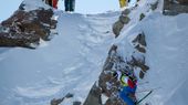Nach Schneefällen und heftigem Wind in den letzten Tagen begutachteten die Bergführer das Northface des Corvatsch am heutigen Morgen nochmals und gaben dann unter höchsten Sicherheitsvorkehrungen das Okay zum Eventstart, sodass die Rider pünktlich zum FWQ 4* Finale starten konnten.