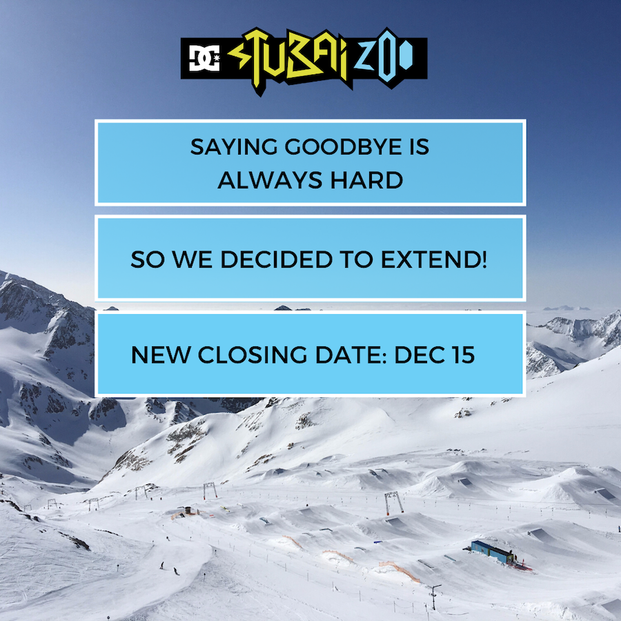 Good News! Der DC Stubai Zoo geht in die Verlängerung! Ihr habt nun noch bis zum 15.12.2019 Zeit, im Gletscherpark zu shredden.