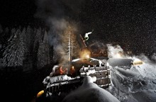Nachdem die Pro-Rider und Daniel mit samt Equipment Nachts mit der Pistenraupe zu der Location auf das Spielberghaus gebracht wurden, ging die Session los.