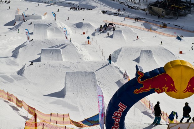 Los gings am Mittwoch mit den ersten Trainings, der Vans Penken Park glänzte durch seinen perfekten shape- und einem Shooting Obstacle in der Pro Line mit internationalem Standard. Das zu erwartende hohe Contest Level der Freeskier zeichnte sich schon hier deutlich ab. Alle waren heiss darauf, ihre neuen tricks zu verfeinern- kein kicker oder Obstacle wurde an diesem Tag verschont!