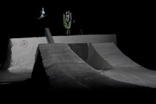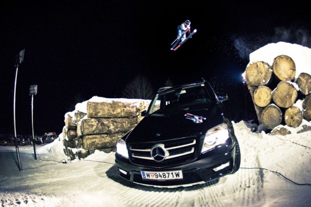 Am Donnerstag Abend setzte die MFO Crew & Partner heuer noch einen urbanen Sideevent für public drauf, der es in sich hatte: die Mercedes-Benz GLK Nightshow! Ein GLK Offroader katapultierte die Nordica Freeskiers über einen- mit viel Liebe inszenierten Show Kicker- aus massiven Holzstämmen und Schnee. Die Zuschauer waren begeistert von der Demonstration des GLK´s- als Antriebspower der Actionsportler für ihre tricks. Diese konnten immerhin Front- und Backflips, sowie stylische 7er über dem gerade mal 5-Meter Gap zum Besten geben. Die anschließende Premiere des neuen Imagespots „GLK meets Freeski“- sowie bester Sound vom Red Bull Truck, und ein rundes Abendprogramm- bescherten allen Besuchern einen gelungenen Abend!
