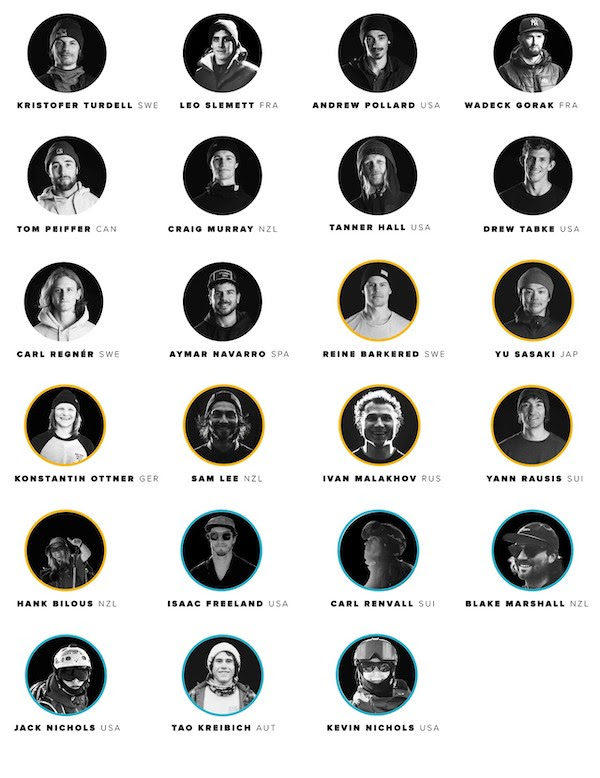49 der weltbesten Freerider starten in vier Kategorien auf fünf Stationen rund um den Globus. Elf Skifahrerinnen, 23 Skifahrer, sechs Snowboarderinnen und neun Snowboarder streiten 2020 auf einigen der aufregendsten Freeride-Hängen der Welt um den FWT-Titel.