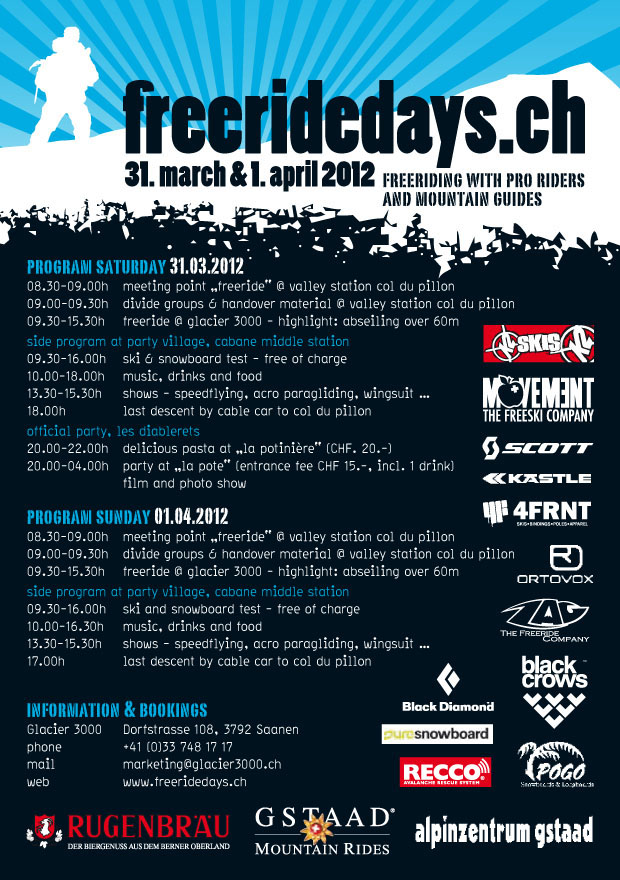 Anmeldung für das Freeriden mit Bergführern für Sonntag, 1. April 2012 hier online oder per Telefon +41 (0)33 748 17 17.