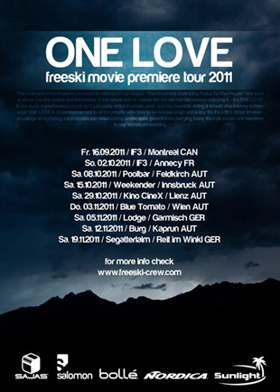 Höflinger Brothers, Pius Schneider, Flo Geyer, Simpl Plastic Färber und wie sie nicht alle heissen… Pack die Jungs in einen Sack und hau mit dem Knüppel drauf. Egal wen Du triffst, es ist immer der Richtige! Vorausgesetzt Du bist auf eine ordentlichen Wambule mit der Freeskicrew aus. Die Guys haben in der deutschsprachigen Skiszene mitleweile was mitzureden. Nachdem man die ersten Jahre eher Edits mit sympatischen Homevideocharakter zu sehen bekam, peitschte der technische Fortschritt der Digicam-Industrie auch die skifahrerischen Skills der Crew unerbittlich auf ein neues Level. Und so bekommen wir in ihrem neuen Film “One Love” nicht wie der Titel vermuten lässt, gleichgeschlechtliche Liebe zu sehen, sondern Freeski Action die sich gewaschen hat!