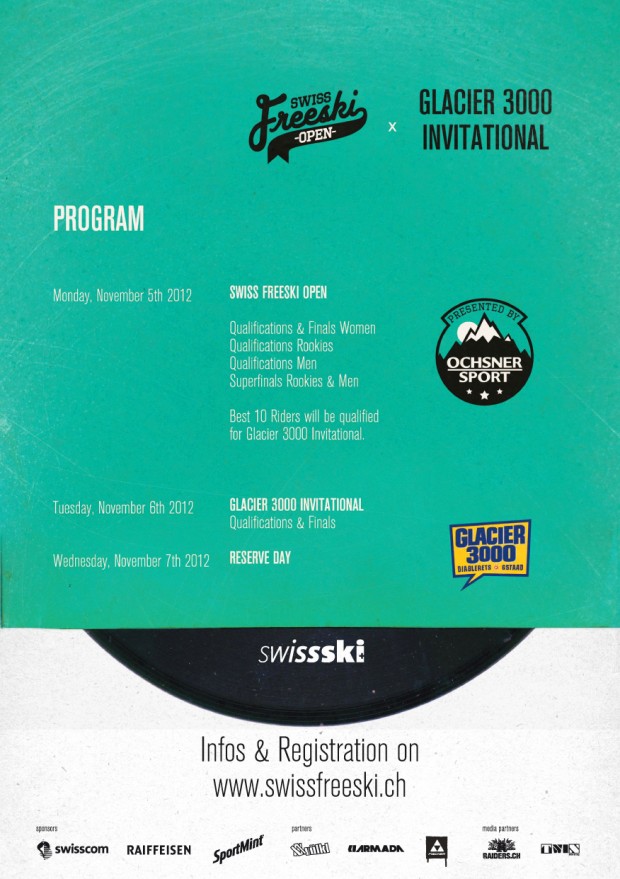 “Zum Auftakt der Wintersaison bieten wir wieder eine tolle Freestyle-Show”, freut sich Bernhard Tschannen, CEO von Glacier 3000. Das Gebiet – für die Show wird ein Top-Snowpark angelegt – eigne sich für die Präsentation der bereits etablierten Sportart Freestyle – perfekt. Der Veranstalter nennt den Anlass Glacier 3000 Invitational und sagt dazu: “Dabei sein ist alles”, oder in der Sprache der Freeskier: “It‘s the place to be on November 5-6th, 2012”.