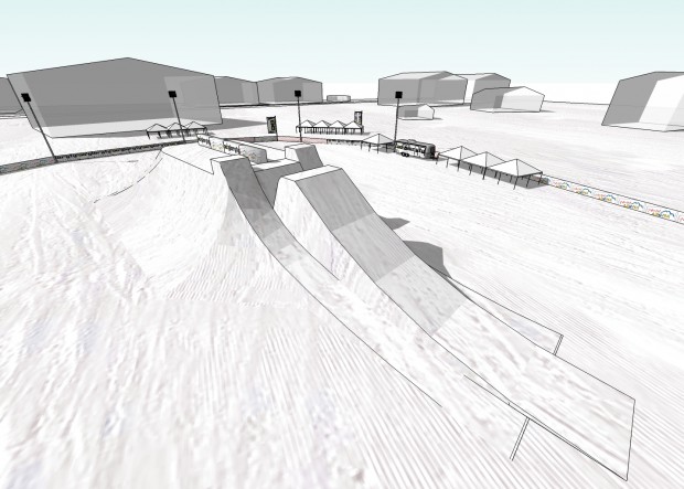Der Run startet mit einem spektakulären Drop von einer Baggerschaufel, nach dem Drop folgt das Main Obstacle, eine 10m hohe Corner die auch als Straightjump(25m Table) gefahren werden kann. Der Fahrer kann also entscheiden ob er sichan der Corner in die Stratosphäre schießt oder den Kicker wählt um die Crowds und die Judges zu beeindrucken.