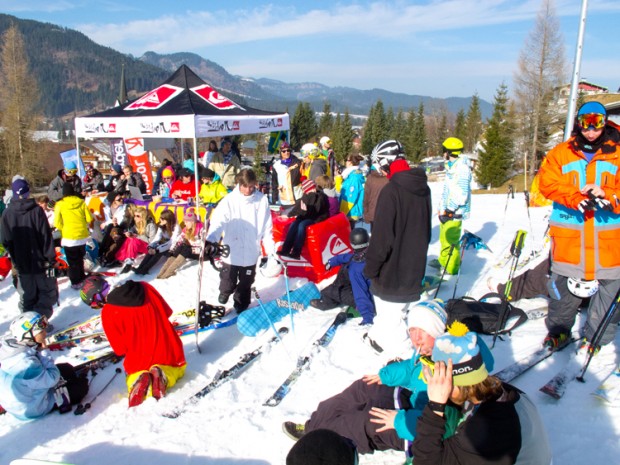 Das super kreative und perfekt präparierte Setup stand bereit und wartete darauf, von den Fahrern geshreddet zu werden. Alle Rider gaben ihr Bestes, denn schließlich ging es neben Sachpreisen von Quiksilver, K2 Skis, Ride Snowboards und Activision auch um die heiß begehrten Wir Schanzen Punkte. Die vielen Zuschauer erlebten top motivierte Freeskier und Snowboarder, die an diesem Traumtag alles aus sich herausholten.