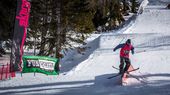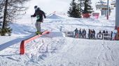 Immer schön am Boden bleiben hieß es beim diesjährigen QParks Freeski Tour Stop ‚La Freestyla’ im Snowpark Alta Badia. Trotz strahlendem Sonnenschein konnte der geplante Slopestyle Contest wegen der stürmischen Bedingungen nicht durchgeführt werden. So wurde der Contest kurzerhand auf die nicht weniger spektakuläre Jib Line verlegt.