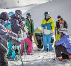 So nutzten wir die „Freeride Days“, eine jährlich stattfindende Veranstaltung, um unseren Teilnehmern auch einmal so wichtige Themen wie Lawinenkunde, Sicherheit und „Kicker bauen“ näher zubringen. Der Tag begann mit dem 1×1 eines jedem Freeriders, der die markierten verlässt: Einer Basis-Lawinenkunde unserer extra engagierten Bergführer sowie einer spassigen Einführung in unsere Ausrüstungsgegenstände LVS-Gerät, Schaufel und Sonde.