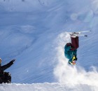 Am Nachmittag gingen wir dann zum wahren Highlight des Wochenende ́s über: Im Teamwork wurden in Windeseile an 2 Wechten ein Haufen Absprünge gebaut, welche in einem Frischen Hang mit metertiefem Powder mündeten. Etwas flachere Absprünge für Spins und etwas steiler Absprünge für Flips. Das Resultat war atemberaubend: Jeder der Teilnehmer machte einen Backflip, die meisten davon den ersten ihres Lebens! Und ja, der Double Backflip wurde auch noch gestanden!