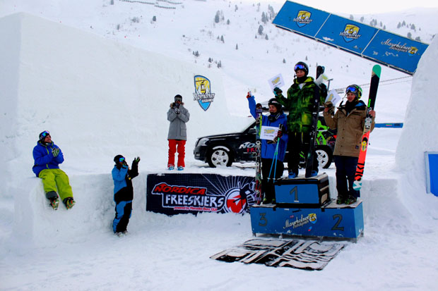 Nachdem der Forecast gestern noch eher weniger cremige Bedingungen verkündete, ließ sich die Sonne heute dann doch des öfteren blicken und die Guys konnten den Park nach allen Regeln der Kunst zerlegen. Das Riding Level war durch die Bank sehr hoch, was nicht zuletzt am nahezu vollständig angereisten Schweizer Freeski Team lag. Doch auch Deutschland und Österreich fuhren schweres Style-Geschütz auf. Schließlich dominierte Cyrill Hunzicker, vor Sebi Geiger und Cyrills Bruder Jonas. Einfach machten es ihnen die restlichen Finalisten jedoch nicht. Es war zu bemerken, dass die Judges einen besonderen Wert auf Style legten und nicht nur auf Dubs achteten. Deswegen war es auch nicht verwunderlich, dass Cyrill ganz oben auf dem Treppchen landete. Besonders seine 9er-Kombos am zweiten Booter waren einfach aller erste Sahne. Und auch Sebi stylte als würde der Penken Park morgen abgerissen werden. Er stompte einfach alles – unter anderem einen massiven Dub 10er – in Grund und Boden. Seine waren Landungen von einem anderen Stern. Jonas machte das Trio komplett. Auch er hatte einen Dub 10er Mute im Gepäck und zwar im besten Hunzicker-Style. Alle weiteren Ergebnisse und Bildmaterial findet ihr im Folgenden. Für alles andere schaut einfach auf: www.mayrhofen-freeski-open.com
