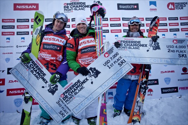 Bei den Freeskiern war es der Tag des Aurélien Ducroz (FRA). Der FWT-Weltmeister 2009 fuhr eine unschlagbare, schnelle Linie und stand selbst die größten Sprünge fehlerfrei. Adrien Coirier (FRA), der von einer zweijährigen Verletzungspause zurückgekehrt ist, und Reine Barkered (SWE) kamen ebenfalls sehr gut mit den Bedingungen zurecht und belegten am Ende Rang zwei und drei.