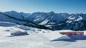 Der Freestyle-Hotspot am Diedamskopf zeigt sich an diesem Tag von seiner besten Seite und die von der Shapecrew frisch abgestochenen Kicker ragen schon fast kitschig ins sonnenbeschienene Panorama. Parkdesigner Basti Adam nennt den Pleasure Diedamspark nun schon im dritten Jahr sein Home & Office und ist sichtlich zufrieden mit den aktuellen Entwicklungen: „Wir konnten den Park in dieser Saison vergrößern und das neue, obere Park-Areal kommt super an!“ Grund zur Freude gibt es allemal, denn seit dieser Saison beginnt der Park direkt am Ausstieg der 8er Gondelbahn und wartet mit 8 zusätzlichen Obstacles in einer Line auf. 100% Naturschnee wird hier in seine sinnvollste Form verarbeitet!