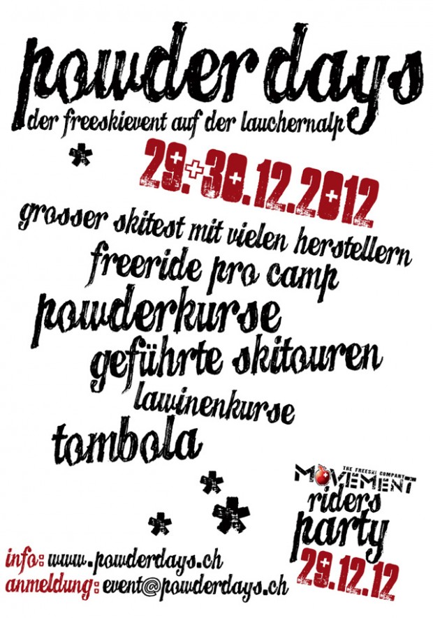 Die Tage werden wieder kürzer, die Temparaturen sinken, und auf dem ein oder anderen Berggipfel ist schon ein weisses “Zuckerl” zu sehen…..wir freuen uns auf die kommende Wintersaison und sind wahnsinnig stolz, euch die Powder Days 2012 in neuem Gewand zu präsentieren.
