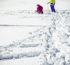 Als erstes auf der To-do-Liste stand, dass die 16 Teilnehmer sich ein Pyua Outfit für das Wochenende aussuchen und dieses auf Herz und Niere testen durften. Der nächste Programmpunkt war eine Einführung mit dem Bergführer Christian, der uns das LVS-Gerät erklärte und uns den Ablauf der nächsten Tage erläuterte. Danach durften wir uns noch Testboards und Ski, gestellt von Rossignol, für das Wochenende ausleihen. Der erste Tag endete mit einem gemeinsamen Abendessen in großer Runde. Es gab ein Pfännchen Kässpätzle und für ganz hungrige noch Kaiserschmarn.