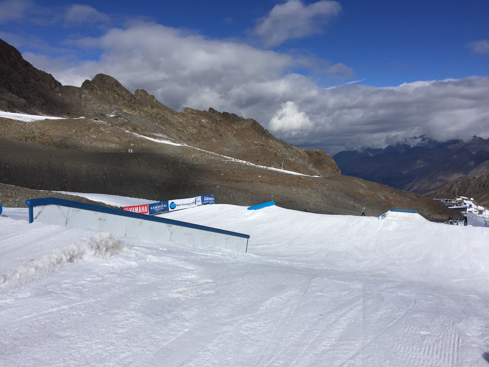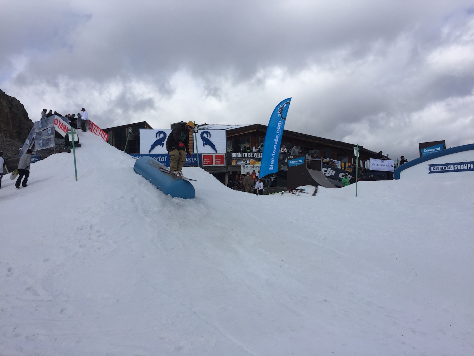 Vergangenes Wochenende stand das 31. Kaunertal Opening presented by Blue Tomato auf der Agenda. Bereits am Freitag startete das Event mit Sonnenschein in die Saison und es waren bereits einige bekannte Gesichter vor Ort, um die neue Half Mile Jibline auf Herz und Niere so richtig zu testen. Im Vergleich zu den vergangenen Jahren wurde der Park massiv ausgebaut und so konnte man circa 15 Obstacles in einer Line fahren. Die Obstacles standen perfekt da und es war für jeden Geschmack etwas dabei. Unser persönliches Highlight war die S- to Donkeydownrail. Ein Obstacle, dass man nur selten sieht und nicht so einfach cleart. Viele bissen sich daran die Zähne aus, doch das gemeinsame Hiken, um das Obstacle zu schaffen, schweisste zusammen.