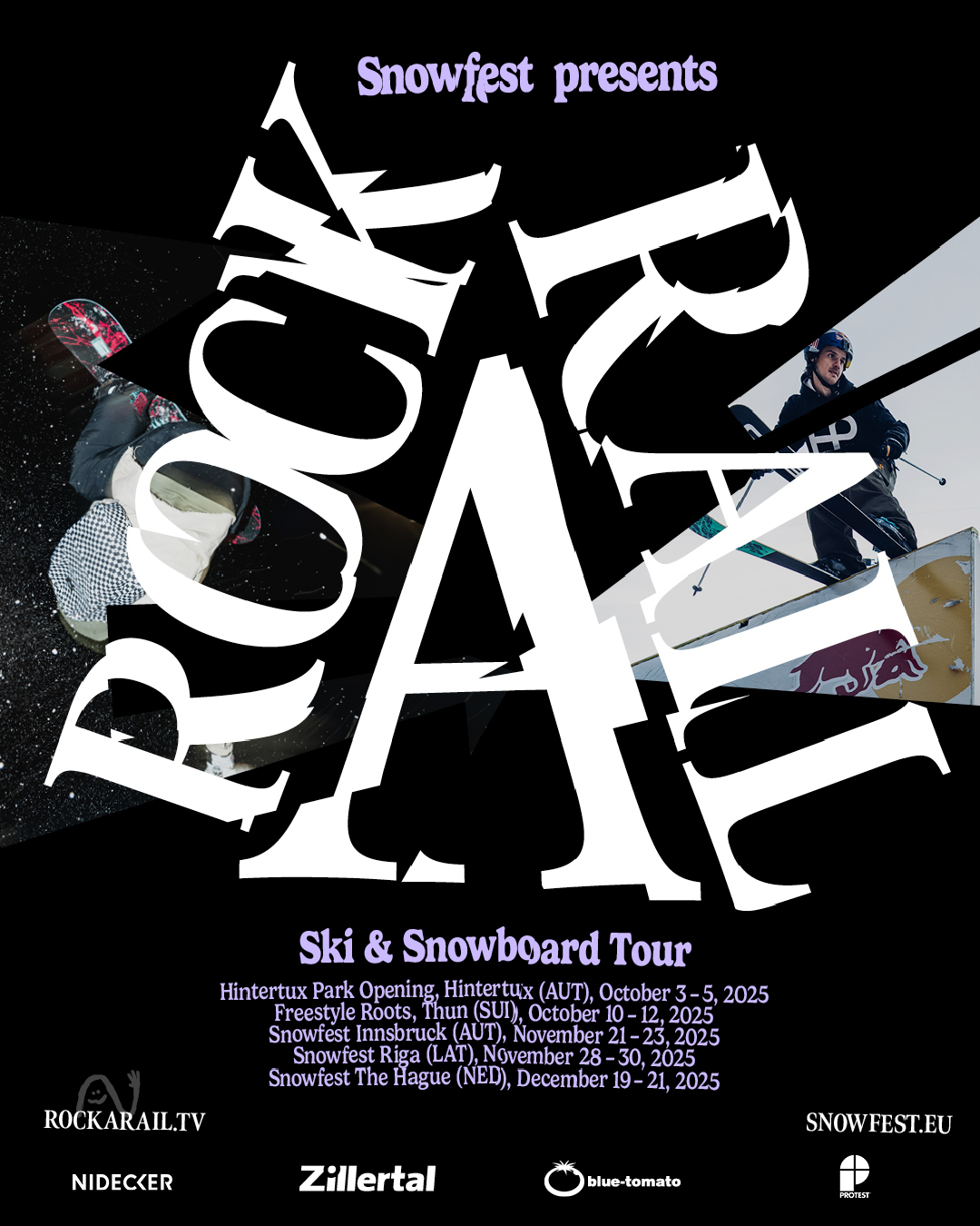 Die Rock A Rail Tour wächst weiter: Im Herbst 2025 macht das europaweit bekannte Street-Ski-Event erstmals Halt an fünf Locations in vier Ländern. Neben den bewährten Stopps in Thun, Innsbruck und Den Haag stehen mit dem Hintertux Park Opening sowie dem Snowfest Riga gleich zwei spannende Neuzugänge auf dem Programm.