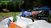 Dass man nicht auf den Gletscher fahren muss um im Sommer shredden zu gehen bewiesen die Mädels und Burschen vom Neighborhood Snowpark am 29. Mai das vierte Jahr in Folge. Auf der Weinebene am unteren Ende des Parks wurde mittels weißer Folien Schnee konserviert um es jetzt noch einmal mit den Skiern krachen zu lassen. Motivierte Freestyler konnten auf dem Tags zuvor aufgestellt und geshaptem Industrial Rail ihre besten Tricks zeigen, und das unter Palmen und mit Summer-Feeling. Egal ob Ski angeschnallt oder mit kühlen Drinks im Liegestühl liegend, es hatte ein ganz besonderes Flair unter solchen Bedingungen den letzten Schnee noch auszunutzen und ein paar verdutzte Blicke von Wanderern einzufangen. Motiviert für die nächste Saison konnte man so das Ende dieses Winters gebührend abschließen.