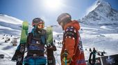 Oben angekommen erstrahlte das Contest-Face direkt unter dem berühmten Zermatter Matterhorn und zeigt sich dank der wolkenlosen Bedingungen von seiner allerbesten Seite. Insgesamt konnten vier Kicker in einer Line von den Ridern genommen werden, es gab aber auch diverse Cliffoptionen. Das Format sollte mittlerweile hoffentlich allen bekannt sein, die Fahrer treten in Paarungen aufeinander, welche am Montag bereits ausgelost worden sind. Insgesamt gab es zwei Runden, à neu Paarungen.