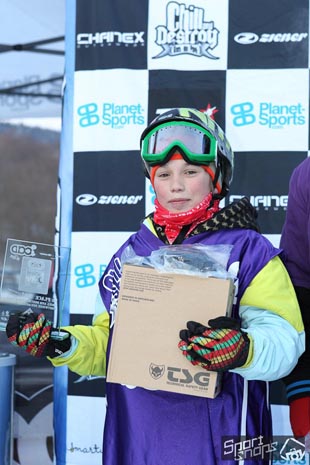 Das Talent hat auf jeden Fall der Gewinner der Kategorie Freeski Kids! Der 13-jährige Marius Nahle startete in der Qualifikation unbemerkt im Heat mit den Freeski Men (Jungs ab 16 Jahren) und qualifizierte sich hier wohl prompt auch für das Finale, wäre die Regelwidrigkeit nicht doch noch rechtzeitig von den Judges entdeckt worden. Jedenfalls hat der kleine Marius, der sich übrigens auch als Shaper des Postwiesenparks verdient gemacht hat, eindeutig mit hohem Abstand die Wertung der Freeski Kids gewonnen. Zweiter hinter ihm wurde der Niedeländer Joppe Von Cutsem vor seinem Bruder Jelle Von Cutsem (3. Pl.).