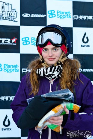 Leider war nur ein Freeski Girl am Start, so dass keine Wertung zustande kam. (Wertung erst ab drei Startern!). Jedoch wurde die Holländerin Annelein Van Cutsen trotzdem für ihre Performance mit einem großzügigen Präsent bei der Siegerehrung beschenkt und vom Publikum mit reichlich Beifall bedacht. Hier zeigt sich abermals, dass die Freeski Core Szene noch deutliches Wachstumspotential bereithält.