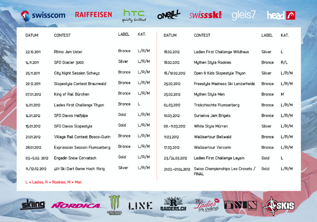 Hier nochmal alle Daten der Swisscom Freeskitour zusammengestellt:
