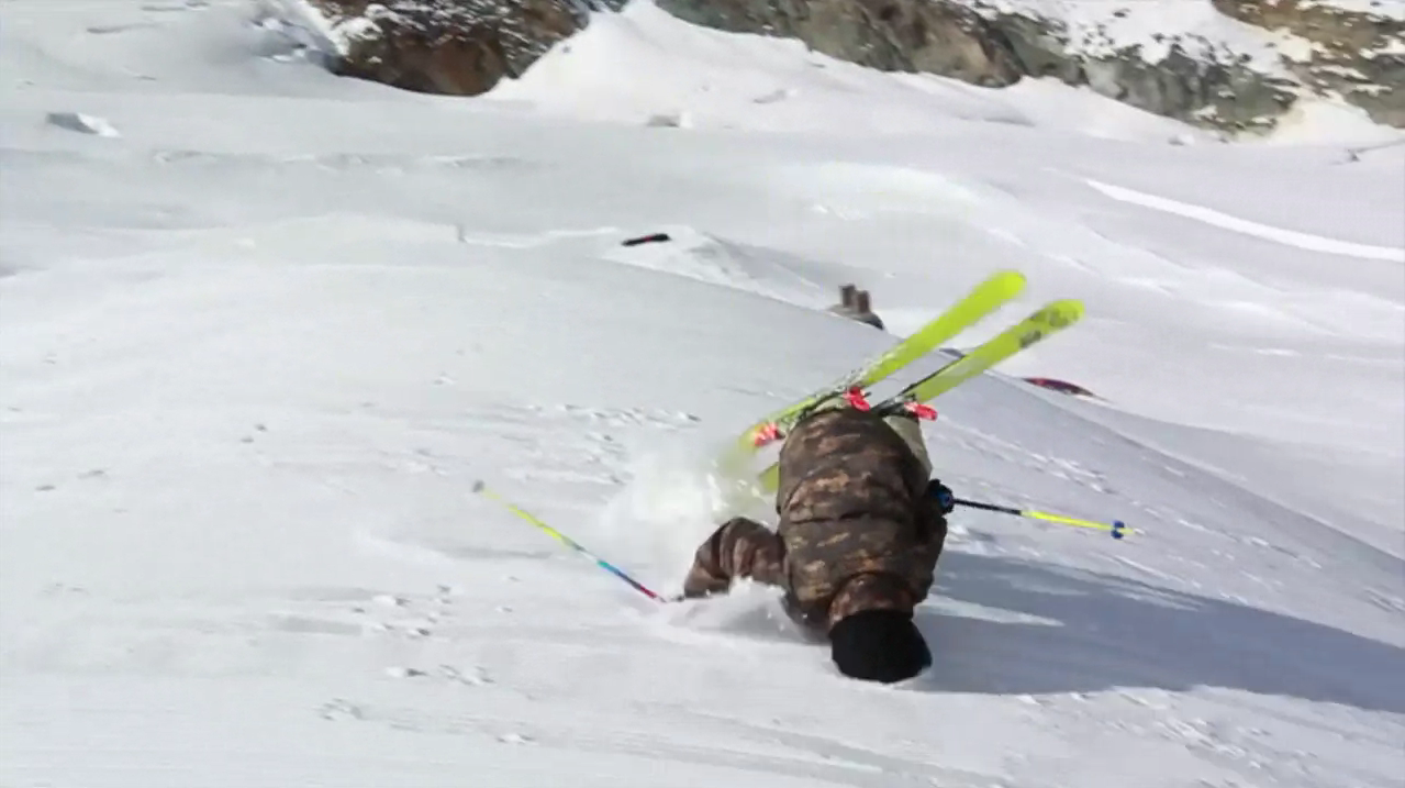 http://www.youtube.com/watch?v=mZJVXf0Q5uc Ein sehr interessanter Crash aus Level 1’s “Partly Cloudy” von Gangster-Skier Ahmet Dadali. Irgendwie verkantet er blöderweise auf dem Rail und hechtet in die Landung,...
