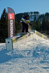 Und es hat sich definitiv gelohnt. Die Rider aus sechs Nationen konnten ihrer Kreativität im abwechslungsreichen Setup des O´Neill Alpspitzparks freien Lauf lassen. Im ersten Teil konnten die verschiedensten Boxen und Rails geshredded werden, ein Kicker mit zwei Absprüngen war die Krönung eines jeden Runs. Bei leckerstem Grillgut und Glühwein herrschte exzellente und entspannte Stimmung am Berg. Über den Tag verteilt wurden rund 2000 Zuschauer Zeugen von Snowpark Action vom Feinsten. Die Fahrer gaben im abwechslungsreichen Setup des Alpspitzparks ihr Bestes.