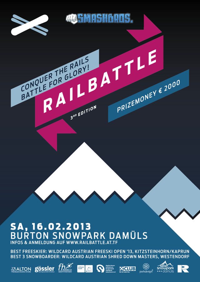 „Conquer the rails, battle for glory!” Unter diesem Motto findet am 16.02.2013 der Freestyle-Contest smashbros RAILBATTLE im Burton Snowpark Damüls statt. Bei der dritten Auflage wird...
