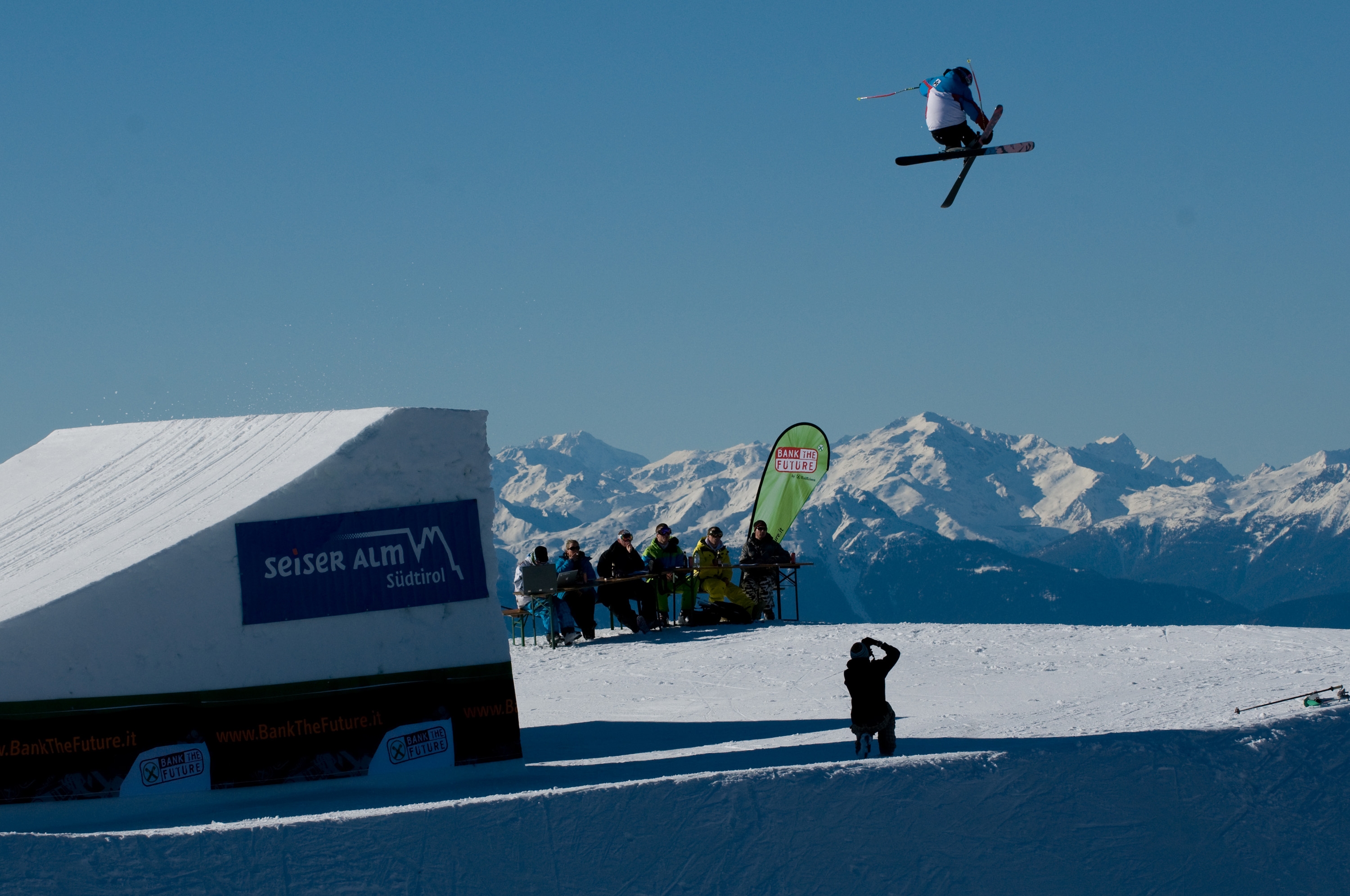 Traumwetter und spektakuläre Sprünge im King Laurin Snowpark auf der Seiser Alm: Die Bedingungen für den ersten Stopp der Bank the Future South Tirol Slopestyle...