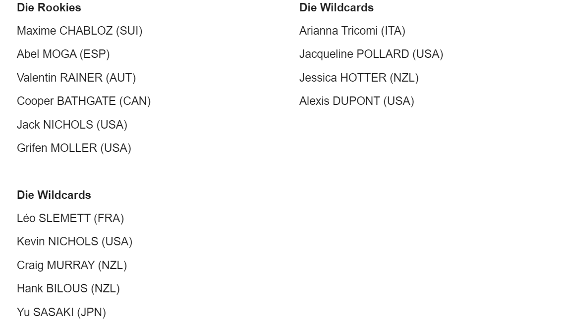 Nachdem die Neuseeländer*innen durch weltweite Reiserestriktionen in der vergangenen Saison an der Tour praktisch nicht teilnehmen konnten, verhelfen die Wildcards ihnen zur Startmöglichkeit in dieser Saison. Ausnahmetalente wie Craig Murray, Hank Bilous und Jess Hotter könnten dieses Jahr mit ihren Skills und ihrer guten Laune überzeugen.