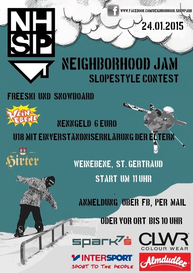 Das Setup im Neighborhood Snowpark steht ready to rock! Am 24. Jänner könnt ihr beim „Neighborhood Jam“, unseren Slopestyle Contest, eure besten Skills präsentieren!!! Fette Preise...