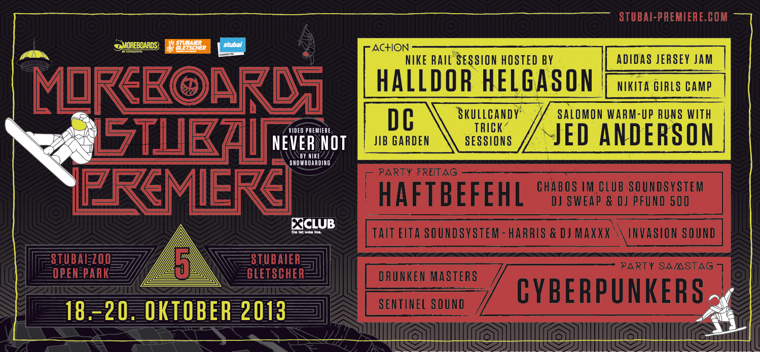 Mit der MOREBOARDS Stubai Premiere startet der Stubai Zoo am Stubaier Gletscher in Tirol/Österreich vom 18. bis 20. Oktober 2013 in die neue Saison. Das...