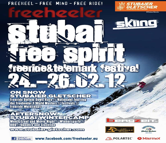 Workshops, Materialtests und Big Mountain Rennen Am Wochende vom 24.-26. 2.2012 trifft sich die Freeride und Telemark Gemeinde zum Stubai Free Spirit Festival am Stubaier Gletscher....