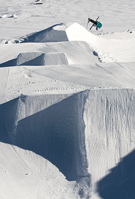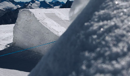 Dabei hat der Better Park schon länger internationale Bekanntheit erlangt, denn die fein geshapten Obstacles locken jeden Herbst die absolute Freestyle-Elite sogar aus Übersee zur Saisonvorbereitung auf den Gletscher. Nicht nur für die Pros ist der Park direkt unter dem Olperer ein fixer Treffpunkt, sondern auch für die hiesige Szene. Mit seiner exponierten Lage direkt auf dem Gletscherplateau und dem Zillertaler Hauptkamm im Background sind euch Money Shots sicher. Eine fette Zweier-Kicker-Line mit jeweils zwei Takeoffs, eine kleinere Kicker-Line, zehn verschiedene Rails, eine monströse Hip und eine Superpipe laden zu viel versprechenden Flugstunden in Tirol ein. Aber auch die Metall-Fetischisten kommen auf ihre Kosten, denn es gibt ausreichend Möglichkeiten, sich die Kanten etwas abzuhobeln. Nun noch ein, zwei nützliche Tipps für Hintertux-Park-Rookies: Da der Olperer vom Herbst bis in den Frühjahr schon ab Mittag einen riesigen Schatten auf die Obstacles wirft, lohnt es sich, neben der stark verspiegelten Goggles noch eine Alternative für diffuse Lichtverhältnisse einzupacken. Und dass es auf 3.000 Metern Höhe schnell mal extrem kalt werden kann, brauche ich wohl nicht noch extra zu erwähnen. XXL-Hoodies sind zwar fein, aber eine gefütterte Jacke sollte zur Sicherheit mit im Rucksack sein. Trust me, park rats!