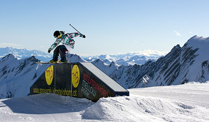Das Kitzsteinhorn oberhalb von Kaprun kennen die meisten wohl als Sommerskigebiet. Als solches ist es recht klein und flach. Das ändert sich jedoch schnell, sobald es Winter wird. Der grosse Vorteil des Kitzsteinhorns gegenüber vielen anderen Gletscherskigebieten ist seine exponierte Lage, die ihm in der Regel weitaus mehr Schnee beschert. Entsprechend kann man rund um den Gletscher oft schon ab Oktober auch abseits der eisigen Unterlage Freeriden gehen. Paradiesische Bedingungen finden aber auch Freestyler, seit Mellow Constructions mit der Betreuung des immer grösser werdenden Parks beauftragt wurde. Dass dieser immer in einem top zustand ist, beweist nicht zuletzt die Tatsache, dass die Austrian freeski open 2010 erstmals in Kaprun ausgetragen werden.
