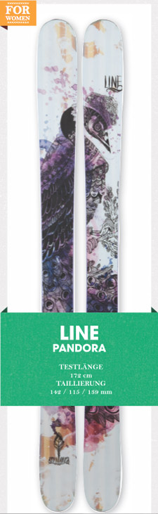 Das Powder-Flaggschiff der Crew rund um Mastermind Jason Levinthal bleibt weiterhin der „Pandora“. Unverändert zum 2012er-Modell präsentiert sich der Twintip lediglich in einem neuen Kleid. Stillstand muss nicht zwangsläufig negativ bewertet werden, wenn man mit einem Produkt wie dem „Pandora“ immer noch zu den besten Skiern auf dem Markt gehört. 115 Millime- ter unter dem Füßchen, Tip & Tail Rocker, die bestens auf den Taper abgestimmt sind, und ein reaktiver Flex charakterisieren auch weiterhin den Line, der somit seine Stärken im Backcounty besitzt. Doch mit seiner umgängigen Art kann der Ski auch durch seine Allround-Tauglichkeit punkten. Abstriche müssen lediglich Hardcore-Freeriderinnen in Kauf nehmen, da hier gerade das Tail nicht genügend Stabilität generiert.