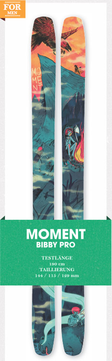 „Handmade in the USA“ – natürlich hebt diese Ansage die Erwartungs- haltung der Tester gegenüber dem Produkt. Das Pro Model von Soul- Shredder Josh Bibby wusste die hohe Erwartungshaltung durchaus zu erfüllen. Obwohl der „Bibby“ als reines BC- und Freeride-Modell an- gepriesen wird, bewies er im Test hervorragende Allrounder-Qualitäten. Schon im Slow Mode beginnt der Ski, durch Rocker-Design im Pow aufzuschwimmen, verliert dank des harten Tails aber auch bei Speed oder Hardpack kaum die Kontrolle. Auch bei Cliff Hucks gibt euch das Tail einen guten Response beim Landen. Kein Wunder, schließlich haut sich der Namensgeber gerne mal eine Klippe runter. Einige Fahrer bemägelten die langsame Base, ansonsten avancierte der „Bibby“ zu einem regelrechten Test-Liebling.