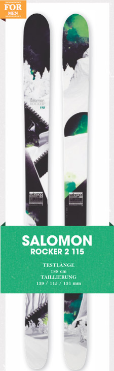 Der schmalere „Rocker 2“ ist riding- orientierter als der 122er. Wo dieser den Freeridern der Test-Crew zu freestyle-affin war, überzeugte der schmale „Rocker“ mit einer aus- gezeichneten Big-Mountain-Performance. Alle waren sich einig, dass dies ein Ski zum Gasgeben ist, was die Tester auch tatkräftig bewiesen. Die ausgesprochen schnelle Base tat ihr Übriges dazu. Dabei zeigte der „Rocker 2 115“ seinen sportlichen Charakter. Schnell war er als Con- test-Maschine deklariert, die kein Terrain zu scheuen braucht. Um das volle Potenzial des kleinen „Rocker“ ausnutzen zu können, muss man allerdings seinen Ansprüchen gerecht werden. Das heißt, dass der Ski für den erfahrenen und ambitionierten Freerider ist, denen kein Peak zu hoch und kein Face zu steil ist. Für Anfänger nur bedingt geeignet.