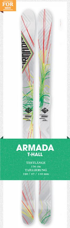 Natürlich durfte Tanners Freestyle- Waffe im skiing-Skitest nicht feh- len, auch wenn Mr. Hall inzwischen meistens mit dem „Magic-J“ durchs Backcountry fliegt. Falls es den Su- perstar dennoch in den Park ver- schlagen sollte, bleibt weiterhin der „T-Hall“ das Maß aller Dinge in der Armada-Range. Der zentrale Mon- tagepunkt der Bindung und seine poppige Nose lassen den Ski gerade switch unglaublich agil performen. Nose Butters lassen sich easy auf Knuckles schmieren und Switch- ups aufs Metall gehören zu den Favorites des Twintip. Durch den steifen Flex im Tail schmecken dem „T-Hall“ aber auch Kicker äußerst gut und in der Pipe lässt sich der Park-Ski präzise kontrollieren. Zwar nicht mehr der Jüngste, dennoch ist und bleibt der „T-Hall“ wohl einer der besten Freestyler auf dem Markt.